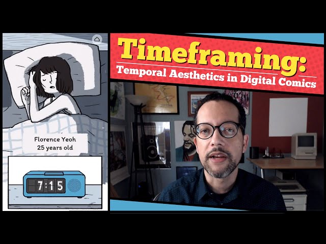 Timeframing: Temporal Aesthetics in Digital Comics argues for treating a number of media techniques typically thought of as unrelated as a singular field: "timeframing", the "juxtaposition of temporal vignettes". Loyer makes his argument on three levels at once: in the content of the work, in its form (an ever shifting split-screen layout featuring excerpts from comics, films, and games), and in the tool used to create it — Stepworks, built by the author for the purpose of exploring the very creative practice for which he is advocating.